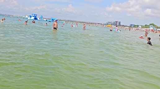 Анапа в конце июля 2023 г. Море стало чище на песчаном пляже, теплее, погода жаркая. Смотрим пляж.