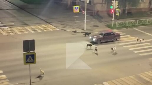 Стая собак атакует автомобили на перекрёстке