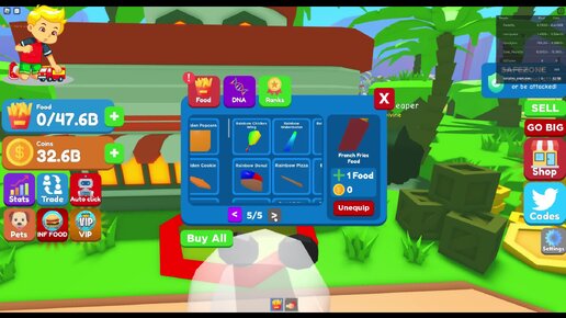 Роблокс игра Обжора 👦🏻👧🏻👪 ч.4 Кэш растёт 🍕 играть и смотреть мультфильм