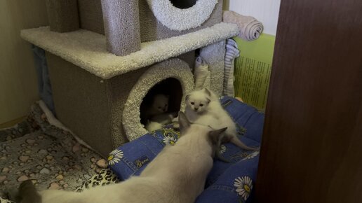 Маленькие котята - малыши кошки Целестина Тайская Легенда вышли погулять и поесть