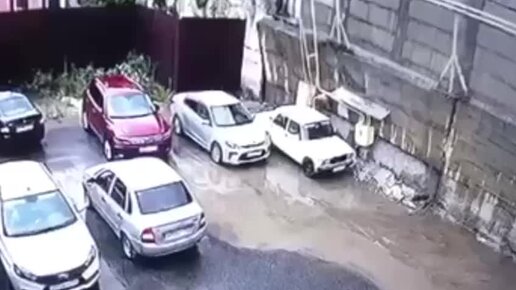 В Кисловодске бетонная стена рухнула на припаркованные автомобили. Как минимум 4 машины не подлежат восстановлению.