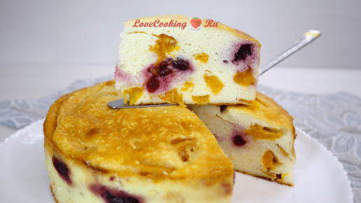 Сочная творожная запеканка с абрикосами и вишней