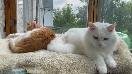 Белла с Рысей вместе отдыхают на балконе