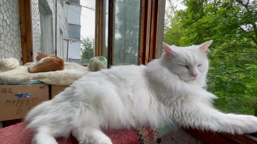 Летний вечер , котики на балконе
