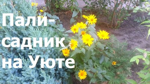 230724 Палисадник на Уюте цветы растения декоративные клумба цветник двор ел можжевельник город Орёл