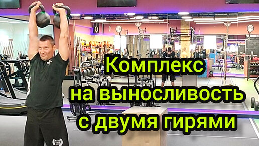 Комплекс на выносливость с двумя гирями. Для продвинутых атлетов. Взятия и швунги гирь, бëрпи с прыжком через тумбу.
