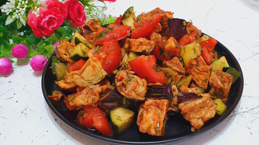 Лёгкий и быстрый салат без майонеза, готовится очень легко, получится сытный обед или ужин