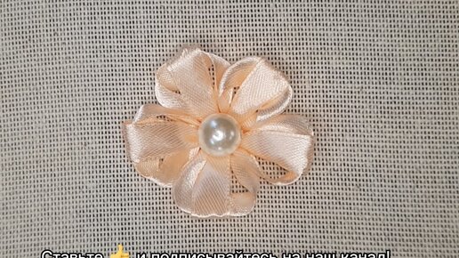 Объёмная вышивка лентами. Нежный цветок из атласной ленты