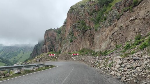 Дорога на Джилы-су. Камень приградил путь. Кабардино-Балкария.