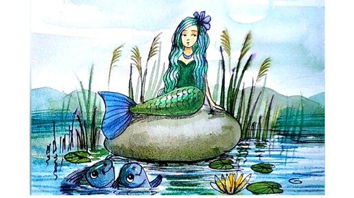 😊✌️🐟🌿Русалка. Рисунок маркером и красками.