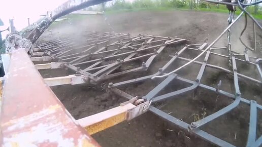 Боронуем довсходов подсолнечника трактор МТЗ 82 с боронками 8 метров
