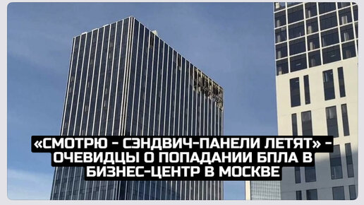 «Смотрю - сэндвич-панели летят» - очевидцы о попадании БПЛА в бизнес-центр в Москве