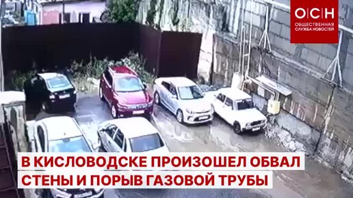 В Кисловодске по улице Промышленной рухнувшая стена здания оборвала газовую трубу и завалила несколько стоявших рядом автомобилей