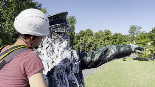 Как делают профилактический уход на памятник Макарову С.О. в Кронштадте