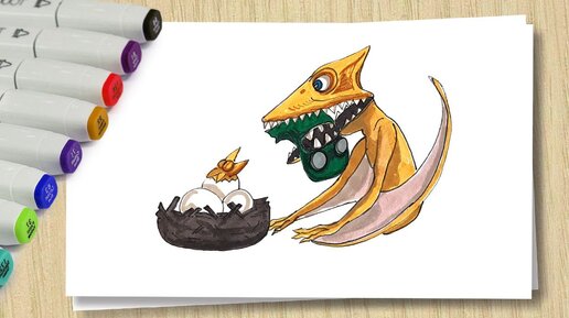 Рисуем Птеродактиля с птенцом/Учимся рисовать/ Diorama of realistic