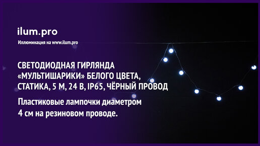 Светодиодная гирлянда «Мультишарики» белого цвета, 5 м, 24 В, IP65, резиновый провод / Айлюм Про