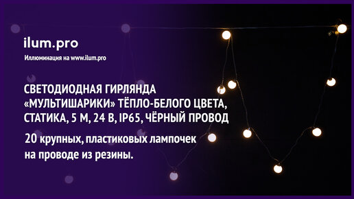 Светодиодная гирлянда «Мультишарики» тёпло-белая, 5 м, 24 В, IP65, резиновый провод / Айлюм Про