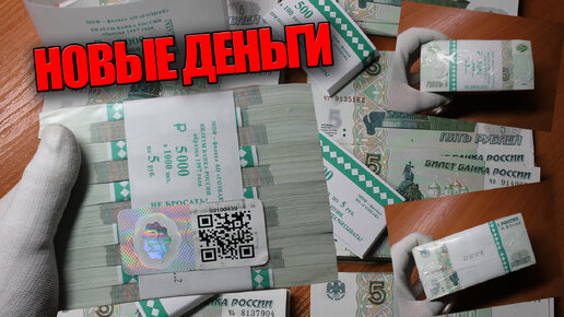 Бумажные деньги 5 рублей 1997 года. Новые деньги банкноты России, вскрываем блок купюр на 5000 рублей