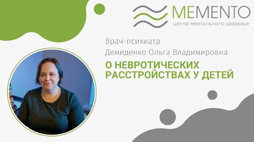Невротические расстройства у детей. Рассказывает врач-психиатр Демиденко Ольга Владимировна