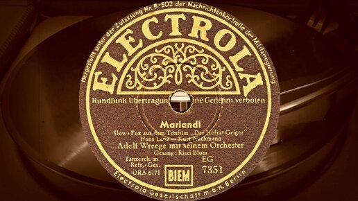 Mariandl /Slow-Fox/ - Adolf Wreege mit seinem Orchester, Gesang: Ricci Blum (1948)