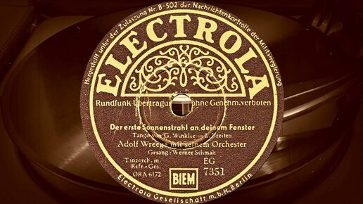Der erste Sonnenstrahl an deinem Fenster - Adolf Wreege mit seinem Orchester, Werner Schmah (1948)