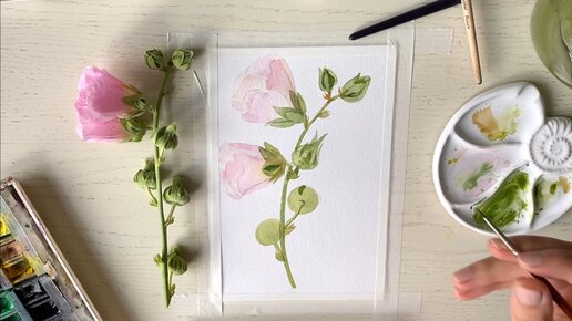 Розовая мальва. Пишем акварелью поэтапно