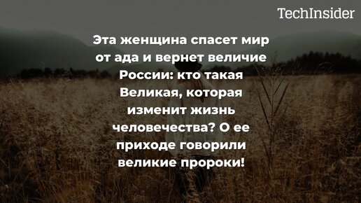 Эта женщина спасет мир от ада и вернет величие России: кто такая Великая, которая изменит жизнь человечества? О ее приходе говорили пророки!