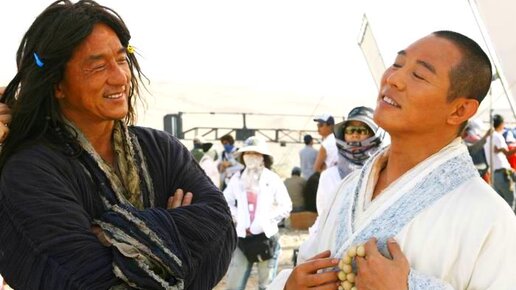 Джеки Чан и Джет Ли на съемках фильма "Запретное царство"