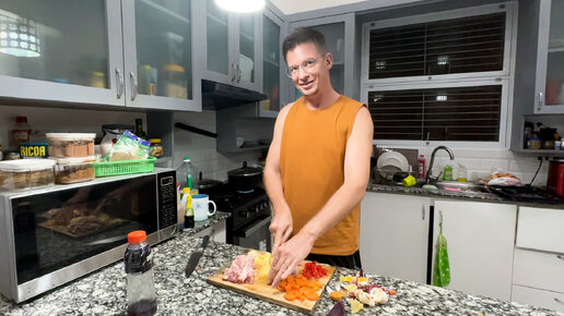 Готовлю чикен карри по рецепту моей филиппинской жены, показываю как правильно резать манго и реакция Юрчика на кошек