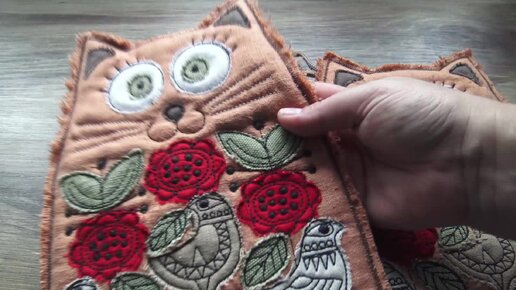 Машинная вышивка: прихватка рукавица Котя.