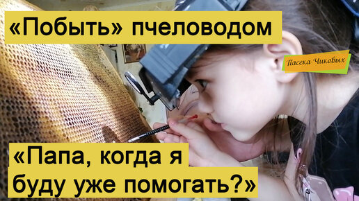Младшая дочь с интересом относится к папиной работе, и даже осваивает азы пчеловодства.