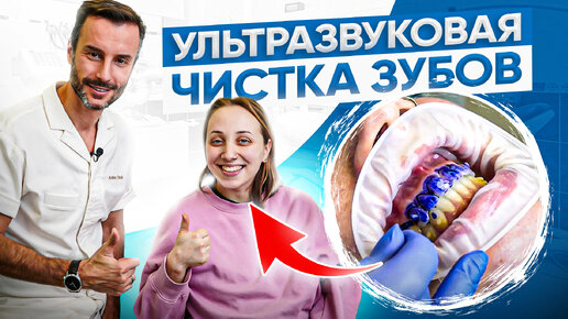Ультразвуковая чистка зубов у стоматолога — Макросъемка