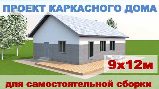Проект каркасного дома 9х12м с большой гостиной и 3 спальнями