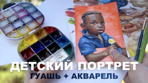 Рисую детский портрет гуашью и акварелью- процесс рисования с комментариями #рисунок #гуашь #рисование #портрет #акварель #процессрисования