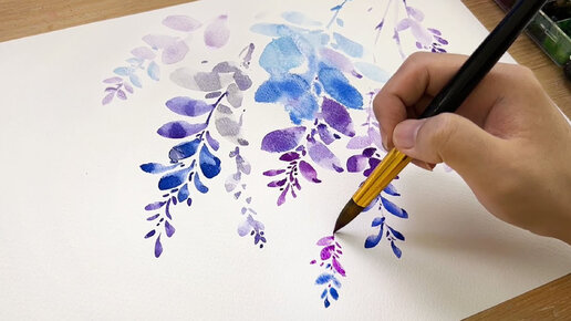 Китайская Живопись акварелью. Рисуем цветок Глициния