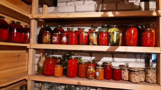 Наш погреб. Что из консервации осталось с прошлого года.