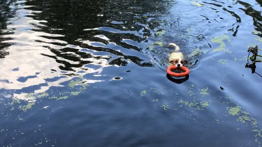 Каждый пес плавает своим стилем. А Джессика, как заботливая мамаша, истерит на берегу, чтобы далеко не заплывали