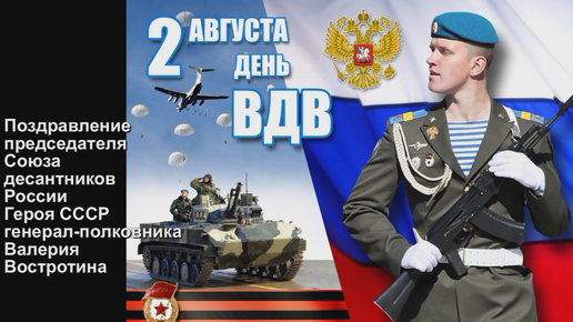 Поздравление председателя Союза десантников России Героя СССР генерал-полковника Валерия Востротина с Днём воздушно-десантных войск