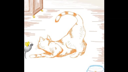 Успокаивающее видео. Кот играет с мышкой. Анимация, нарисованная мной в Paint