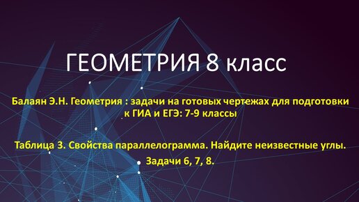 Геометрия 8 класс. Найдите неизвестные углы параллелограмма_задачи 6, 7 и 8 на готовых чертежах