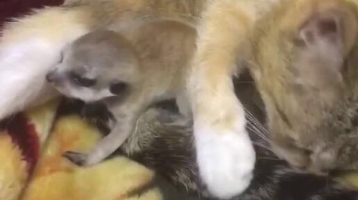 Кошка стала матерью сурикатов!