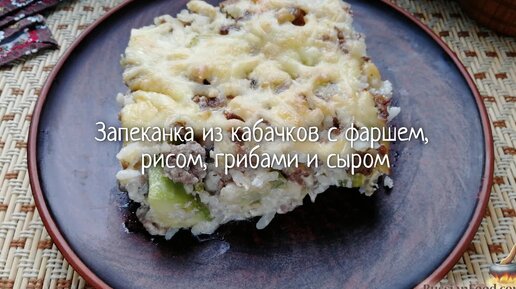 Сытная запеканка на всю семью. Запеканка из кабачков с фаршем, рисом, грибами и сыром.