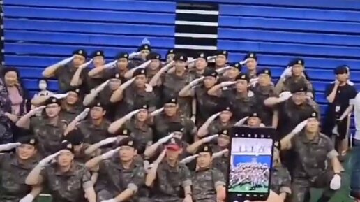 Всемирный помощник инструктора Ким Сокджин. Курсанты скандируют имя Джина (Jin) из BTS на выпускном из учебки.