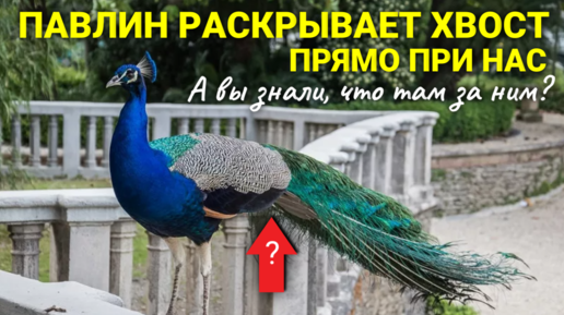 Павлин раскрывает хвост в нашем присутствии и даже разворачивается задом!