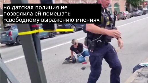 В Дании женщина пытается помешать сожжению Корана. Однако "свобода слова" важнее!