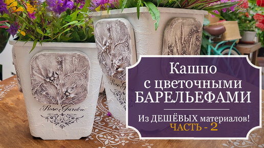 Кашпо с цветочными барельефами - Красота из дешёвых материалов СВОИМИ РУКАМИ - Часть 2: Контейнер для рассады превращается в красивое кашпо