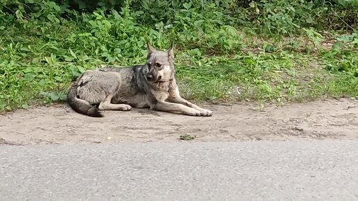 Большие уличные собаки гуляют сами по себе по улицам города.