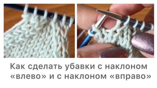 Как делать убавки спицами с наклоном «влево» и с наклоном «вправо»