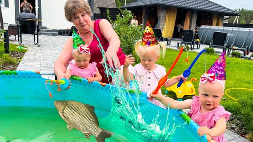 Николь и Доминика ловят рыбу в БАССЕЙНЕ. День Рождения Ники Лайф