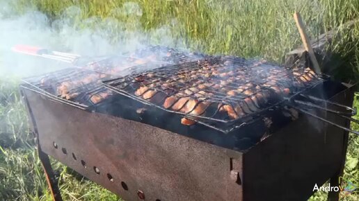 А за городом на мангале жарится мясо. Вкуснейшее мясо...